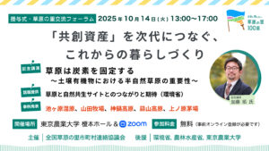 事業対象地域の要件には「未来に残したい草原の里100選」に選ばれた草原を有する地域が含まれています。「未来に残したい草原の里100選」が具体的な国の施策に初めて活用された事例です。