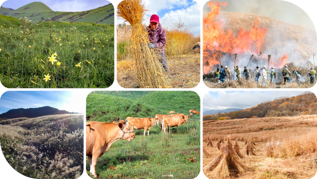 一方、観光資源としての価値が高く、多くの希少動植物が暮らし、さらには水源涵養や二酸化炭素の固定能力が高いなど、新たな価値が見直されています。また、草原のある里で育まれてきた「過去のものと思われていた」技術や知恵こそが、これからの持続可能な社会を実現するために欠かせないものであることが分かってきました。