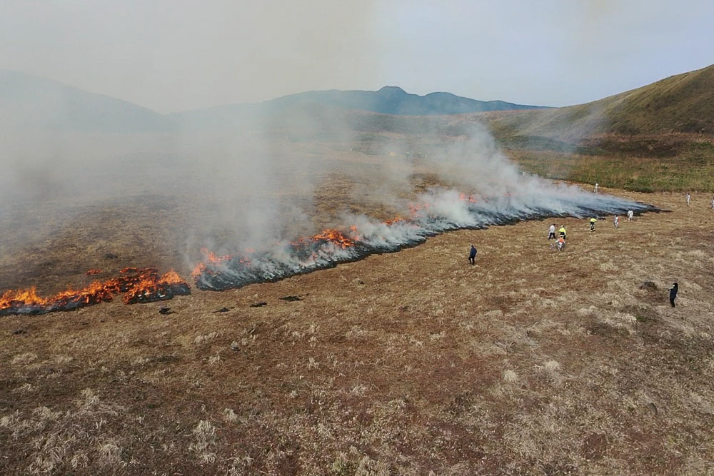 半自然草原の維持保全に最も有効なのは山焼きであることはこれまでの取り組みの結果から明白であり、その実施面積の拡大を図ることが最大の課題である。しかしながら、春先特有の強風条件やボランティア参加者数の限界、観光施設等の配置などから、山焼きの実施区域は一部に限定せざるをえず、当面は草刈との併存で対処せざるをえないと考えている。現状では山焼きの実施区域の拡大は、現在実施している通称大噴火口内13ha 周縁部を中心に考えており、安全かつ確実に実施するため、参加者数の拡大に繋げる広報活動の充実や男鹿市が実施している草刈活動との連携強化、事前の防火帯造り作業ボランティア活動の強化等に取り組む必要がある。一方、山焼き実施箇所以外の草原においては、男鹿市による草刈活動の継続のみならず、地元住民や各種活動団体等の草刈活動への参加を呼びかけるとともに、活動資材の提供・貸与や保険の加入など活動しやすい環境整備を図る必要がある。