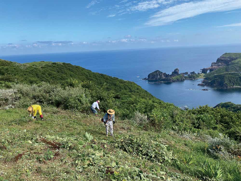 島内ではかつて、「牧畑」と呼ばれる伝統的な輪転式農業が行われてきた。島内の土地をいくつかの牧区に区切り、牧区ごとに耕作と放牧を交互に繰り返すことで地力の回復を図りながら作物を効率よく生産する農法である。交通の発達とともに耕作が行われなくなり、放牧にのみ利用されて生まれたのが現在の草原で、今でも公共放牧場として利用され、約1,000 頭の牛馬を支える放牧基盤となっている。